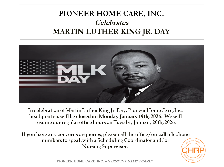 In celebration of Labor Day, Pioneer Home Care, Inc. headquarters will be closed on Monday, September 1st. We will resume our regular office hours on Tuesday, September 2nd.
